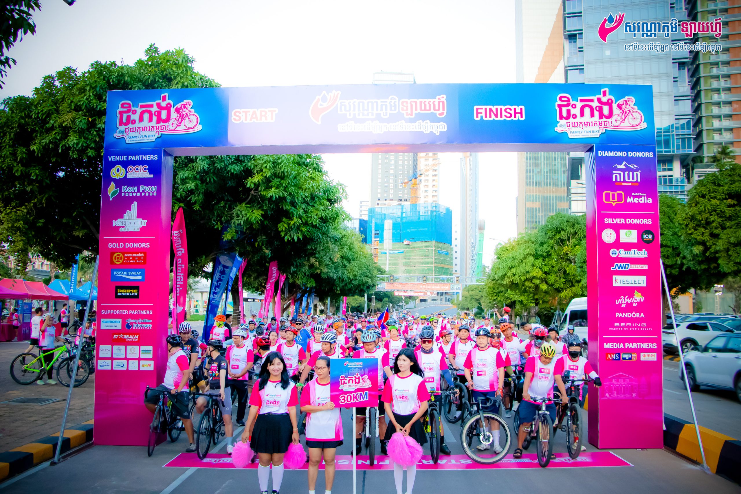 This year’s event drew more than 500 local and international cyclists, showcasing strong community spirit and growing public support for children’s welfare in Cambodia. Participants of all ages joined the ride, turning the streets of Koh Pich and Koh Norea into a lively scene of bright colors, enthusiasm, and shared purpose.
